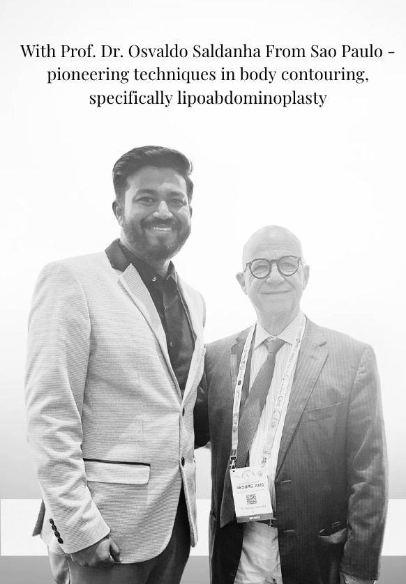 M.B.B.S., M.S. General Surgery, M.Ch Plastic, Reconstructive & Burns Surgery, Fellowship in Hair Restoration Surgery, Special Training in Indian Rhinoplasty, Special Training in High Definition Liposuction.